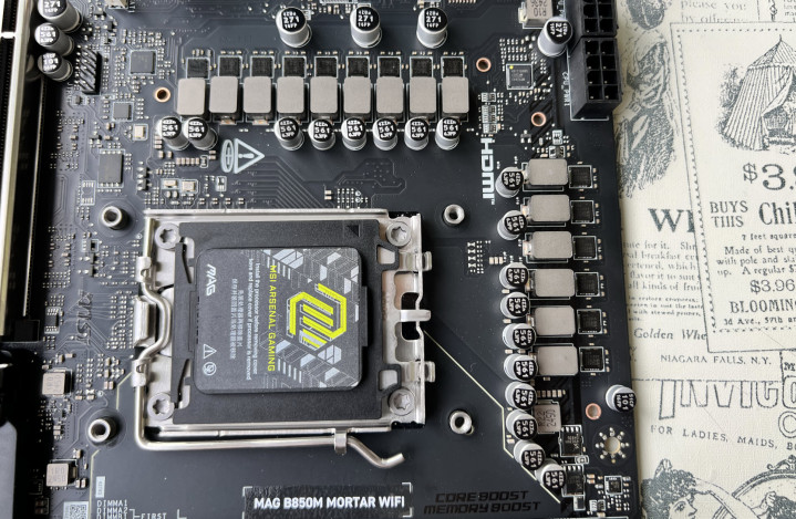 微星B850M迫击炮主板的一大亮点是其卓越的供电系统。它配备了12+2+1相智能供电模块,核心部分采用60A SPS DrMOS,确保即使是最顶级的AMD AM5处理器也能得到稳定的支持。