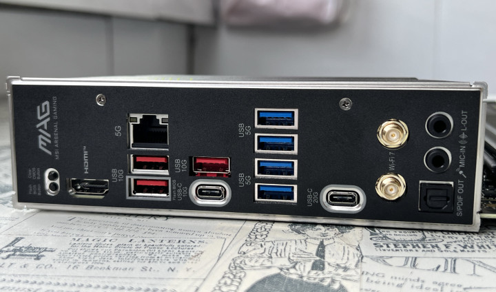 在网络连接方面,微星B850M迫击炮主板同样表现出色。它内置Wi-Fi 7无线网卡以及5Gbps有线网络接口,保证了无论是在线游戏还是高清视频流媒体播放都能获得流畅无阻的网络体验。而在多媒体接口上,该主板后置面板配置了丰富的接口选项,包括多个USB-A/C端口(最高可达20Gbps)、HDMI 2.1输出接口等,满足了现代用户对多设备连接的需求。特别是EZ Debug LED灯的设计,让用户在遇到问题时能够迅速定位故障源,极大地提高了维护效率。